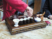 中国のお茶屋さんです。ディスプレイは、お皿に見えますが『お茶』です